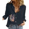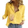 Women Lapel Neck Fashion Long Sleeve Top Printd Cotton Linen Button-up Shirt Ladies Casual Print Blouses