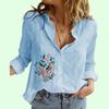 Women Fashion Button-up Shirt Summer&fall Cotton Linen Floral Print Top Ladies Casual Long Sleeve Blouse