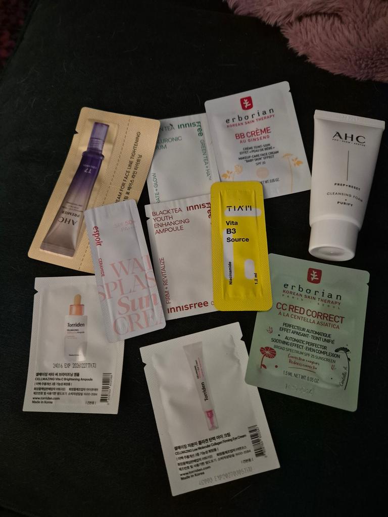 O cutie specială, aleatorie, umplută cu o varietate de mostre de cosmetice coreene populare.