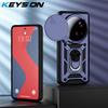 KEYSION Shockproof Armor Case for Xiaomi 15 Ultra 5G Slide Camera Lens Protection Ring Stand Phone Back Cover for Xiaomi15 Ultra