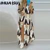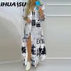 IHUASU Rochie Cămașă cu Imprimeu Temperamental de Primăvară Toamnă pentru Femei, cu Nasturi Simpli, Rochie Cămașă Deschisă, Rochie Lungă Casual
