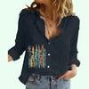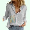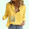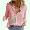 Women Fashion Cotton Linen Shirt Summer&fall Loose Long Sleeve Top Ladies Casual Flower Print Button-up Blouses