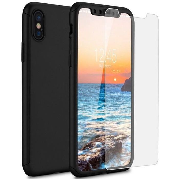 Coque et protection d'écran - Phonillico® - iPhone XR - Plastique Rigide - Verre Trempé - Protection Intégrale
