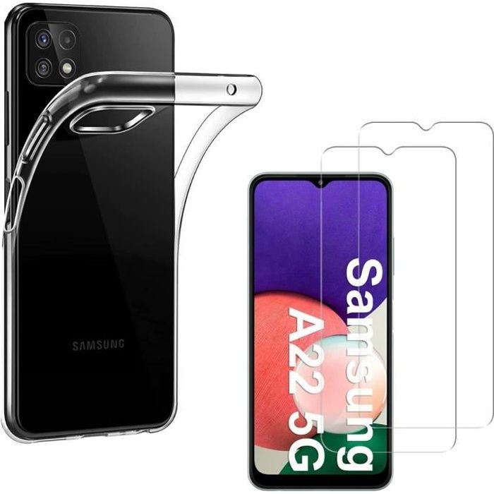 Coque pour Samsung A22 5G - Phonillico - Silicone Souple - 2 Verres Trempés - Protection Ecran - Transparent