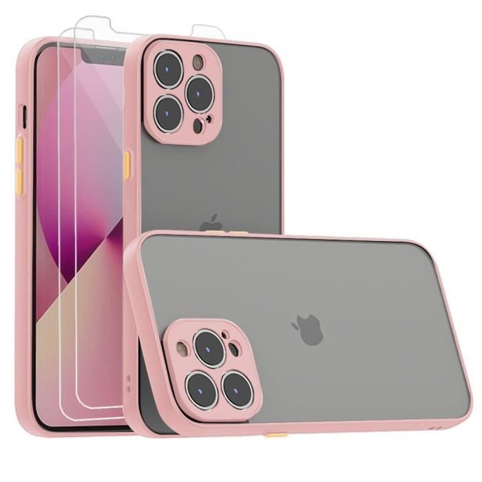 Coque pour iPhone 13 Pro Max - E.F.CONNECTION - Semi-rigide - Rose - Verre Trempé - Anti-choc