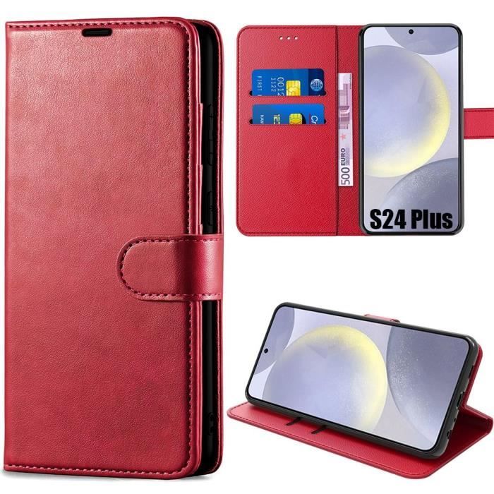 Coque - Efconnection - pour Samsung Galaxy S24 Plus - Cuir PU - Rouge - Antichoc - Fermeture Magnétique