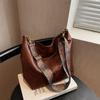 Geantă Tote de Damă Vintage, Geantă de Umăr Sling din Piele PU la Modă, Capacitate Mare, Simplă, cu Curea Lată, Tip Găleată, Crossbody, Modă