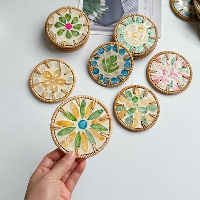 Boem Ratan Adevărat Fin Țesut Culoare Scoică Suport de Masă Nordic Izolație Pad Restaurant Acasă Rotund Desktop Coșuri Decorative
