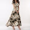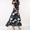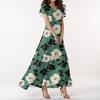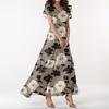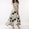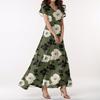 Rochie de damă ocazională cu decolteu în V, cu mânecă scurtă, cu talie înaltă, cu imprimeu retro cu frunze de flori