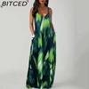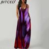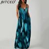 BITCED Rochie Elegantă de Modă Lungă până la Podea Fără Mâneci cu Decolteu în V Simplă pentru Femei de Vară Retro Imprimată Lejeră în Talie Dreaptă