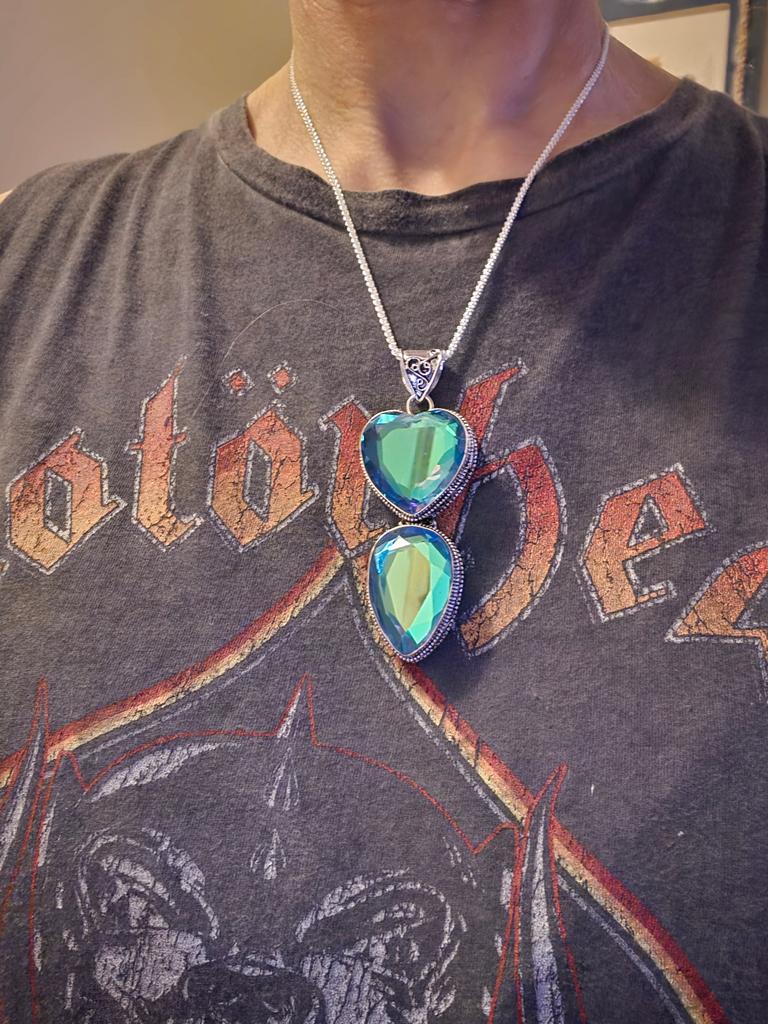 Mystic Topaz Handmade 925 Sterling Silver Jewelry Pendant 2.68" h0P94