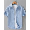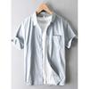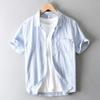 Cămașă de vară din bumbac și in, stil japonez, cu mânecă scurtă pentru bărbați, cămașă de plajă pentru bărbați, topuri, buzunar pătrat, cămașă albastră cu nasturi, cămașă casual de zi cu zi