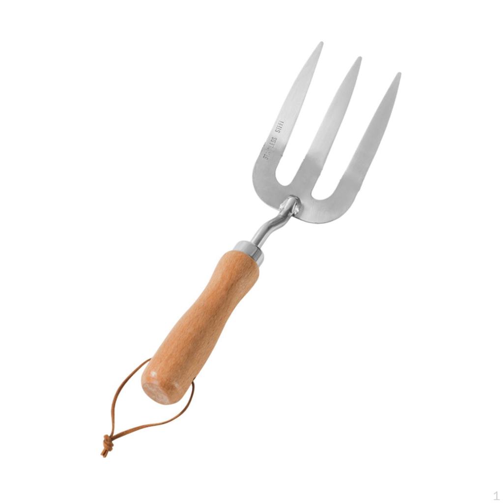 Garden Fork Hand Weeder Heavy Duty Tool with Beech Wood Handle for Gardening Yard Indoor
