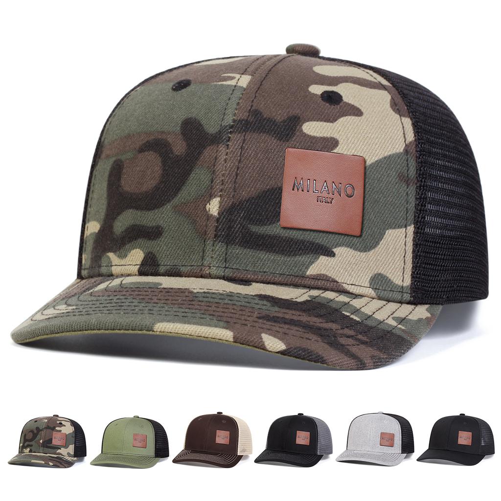 Unisex Brown MILANO Letter Leather Label Baseball Net Caps Adjustable Casual Hats Spring and Summer Outdoor Sunscreen Hat