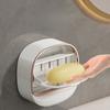 1pc Waterproof Soap Dish with Cover, No-Drill Wall-Mounted Soap Holder, Premium Drainage Bathroom Soap Rack, Rectangular Bathroom Accessory