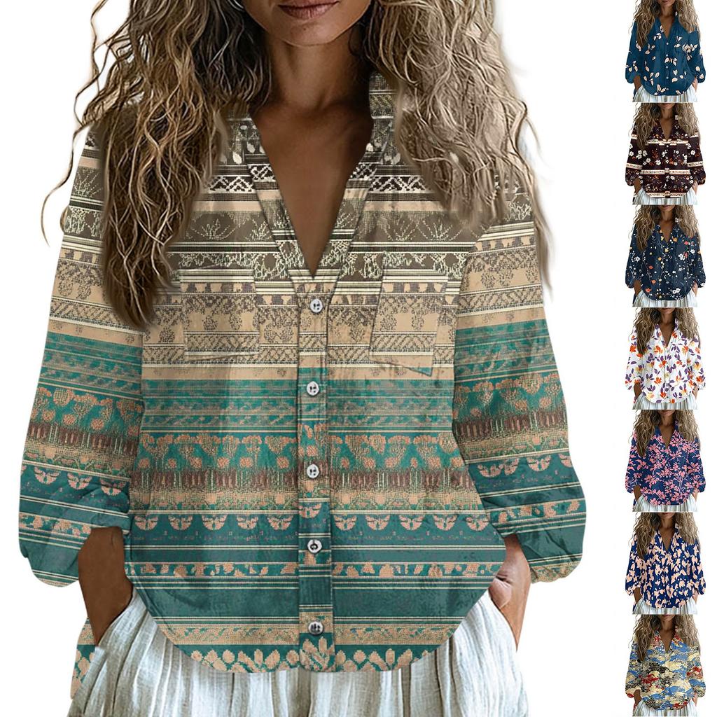 Topuri Dama Bumbac In Cămăși cu Mânecă Lungă Largi Gât în V Tricouri Boho Bluze Vintage