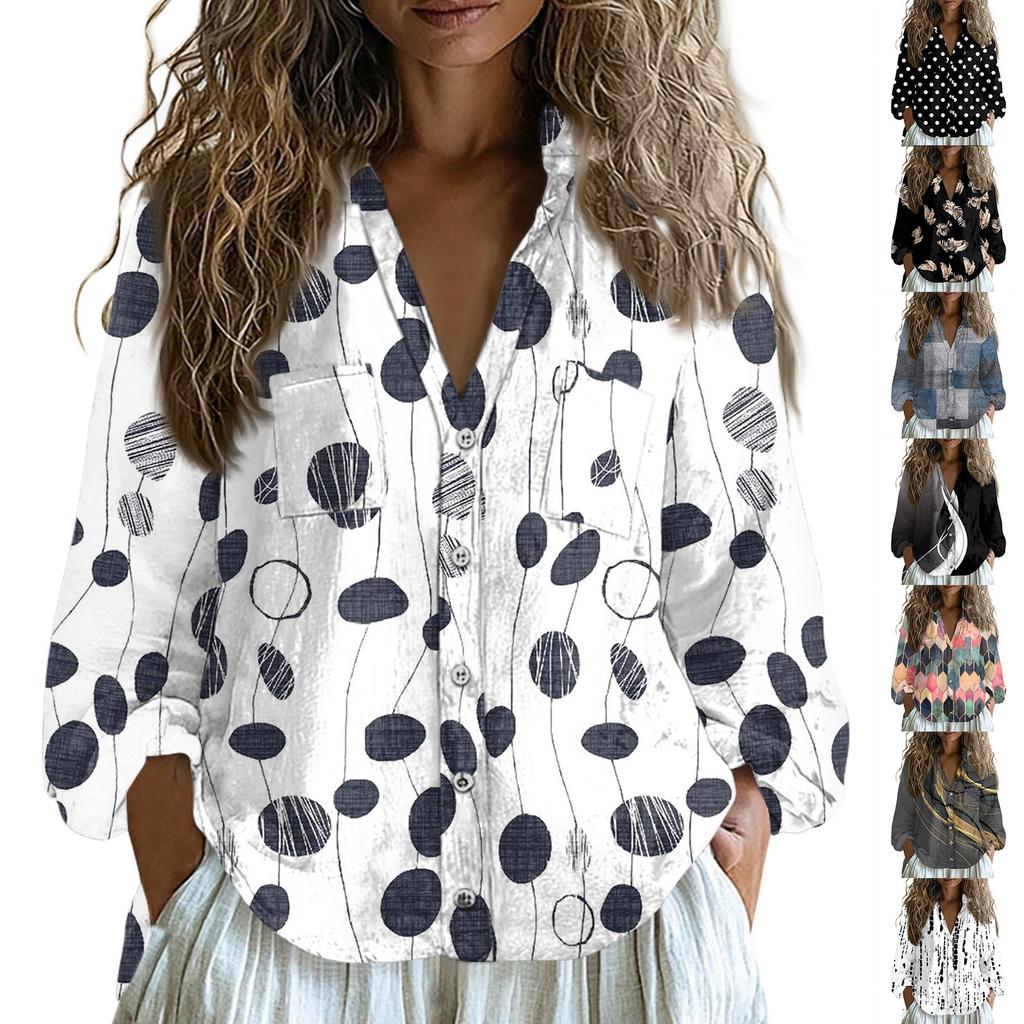 Topuri Dama Bumbac In Cămăși cu Mânecă Lungă Largi Gât în V Tricouri Boho Bluze Vintage