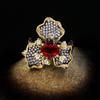 Bijuterii Populare Europene și Americane Aur Negru Bicolor Flori Incrustate cu Diamante Roșii Inel Exagerat pentru Femei