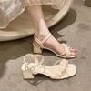 Sandale cu toc înalt noi de vară 2025 Sandale uimitoare cu simț de design de nișă Temperament de fată Toc gros Curea cu un cuvânt Sandală Mary Jane
