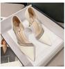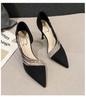 Sandale cu toc înalt pentru femei, cu vârf ascuțit și strasuri din PU, stil de vară Fairy Fashion, fără slip-on