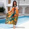 Women's Fashion Summer Spring Feather Print 1/2 Sleeves V-Neck Loose Waistline Casual Dresses