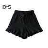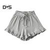 Pantaloni scurți waffle tricot pentru femei, cu șnur, talie elastică, cu volane, cu picior larg, pantaloni scurți fluizi, ținută casual de vară pentru lounge