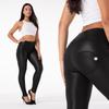 Shascullfites 2022 Pantalon de șold din piele PU piersică: Salopetă de yoga sexy pentru femei în stil european și american