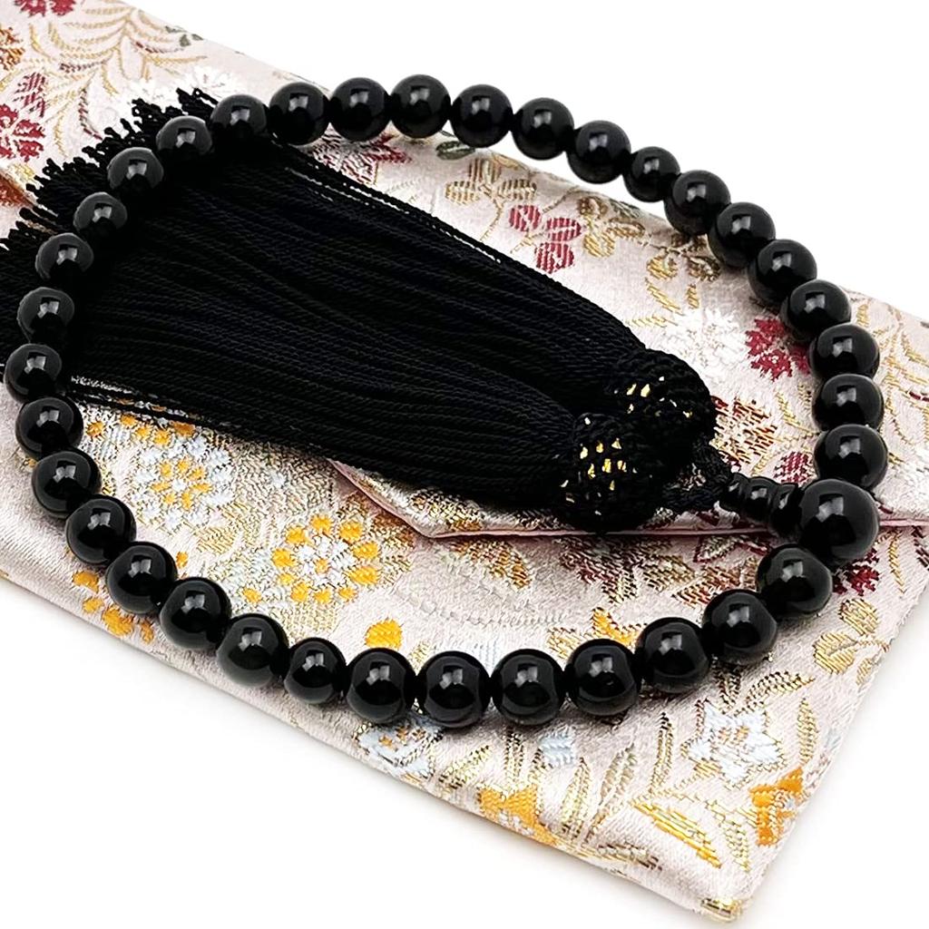 Eizen Nenjuya Prayer Beads for Women Onyx 7mm Beads with Textile Bead Bag Juzu Prayer Beads Handmade for All Sects (Black Heads) [Nishijin Included]