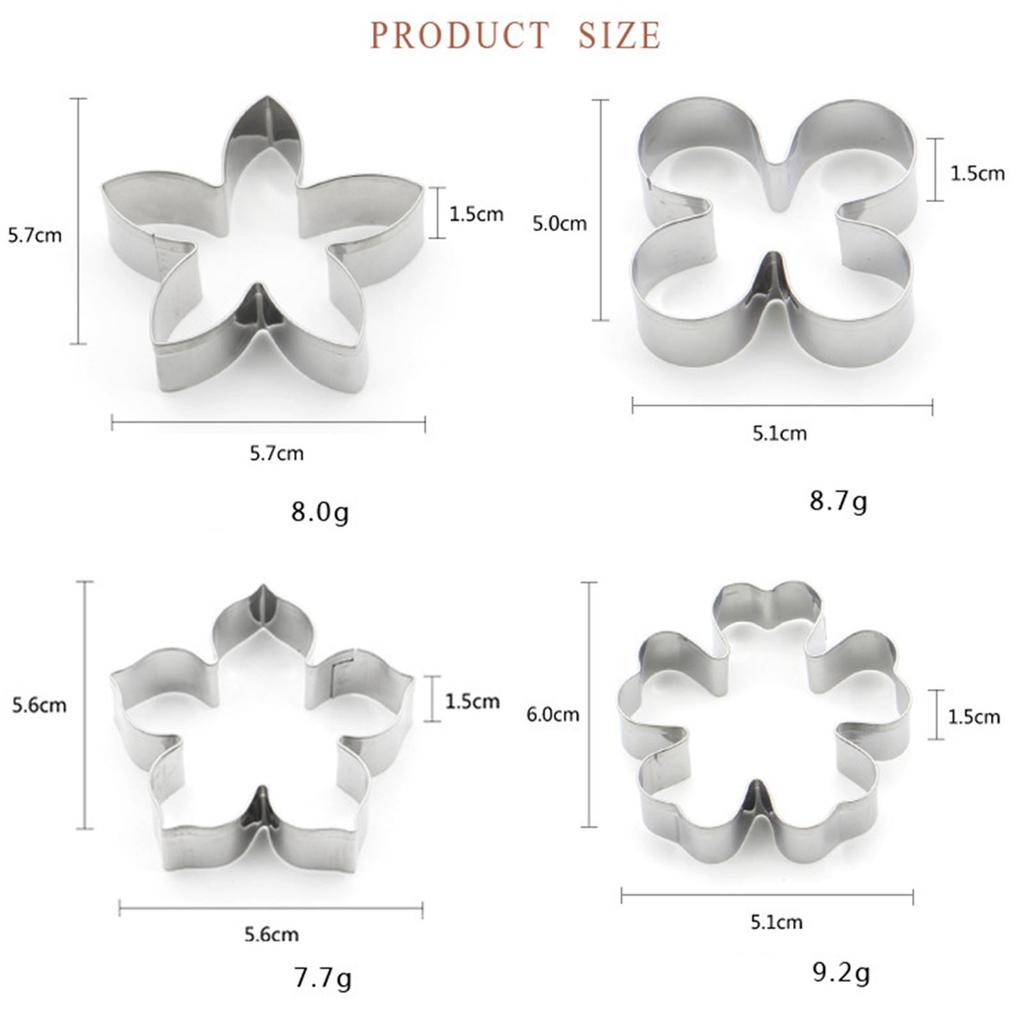 Set versatil pentru copt: Acest set de 4 forme de biscuiți are un design în formă de floare, puteți crea biscuiți cu forme unice, perfecte pentru posibilități creative nelimitate în bucătărie.