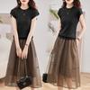 Embrace elegance with the 2024 Summer Women's Slim Organza Dress, a sophisticated two-piece set designed for the modern woman. This ensemble features an ice silk knit waist that seamlessly blends with a flowing organza skirt, creating a flattering silhouette perfect for summer occasions. Crafted from high-quality polyester, this dress ensures comfort and style, making it an ideal choice for both casual outings and formal events. Experience the perfect combination of contemporary design and timeless appeal with this chic and versatile set.