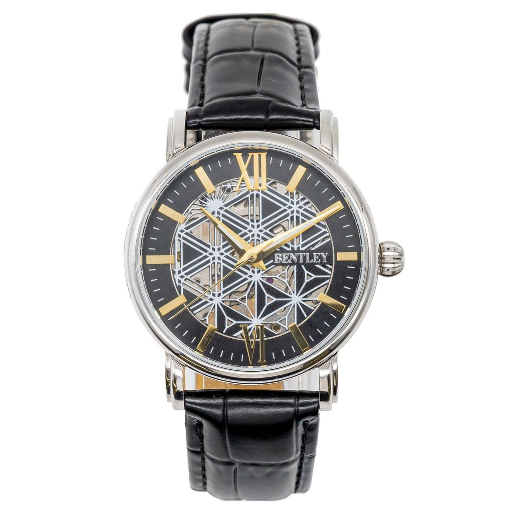 [Clefer] Ceas analogic bărbătesc cu curea din piele, mecanic, cu înfășurare manuală Bentley argintiu BT-AM309-SV negru