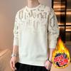 Stay warm and stylish this autumn and winter with this men's plush long-sleeve knitted sweater. Designed for a casual yet trendy look, this sweater features a comfortable round neck and stand-up collar. Crafted from high-quality cotton material, it ensures a cozy feel against your skin while maintaining breathability. The loose fit adds a contemporary touch, making it perfect for layering. With a chic letter decoration, this pullover stands out as a versatile piece for various occasions, seamlessly blending comfort with modern style. Ideal for those who value both fashion and function.