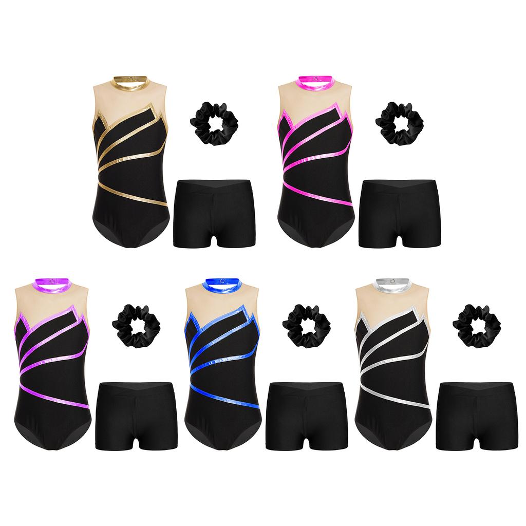 Set Sportiv Fete Body Patchwork Design Spate cu Gaura Pantaloni Scurți Bandă pentru Cap Costum Practică Sală