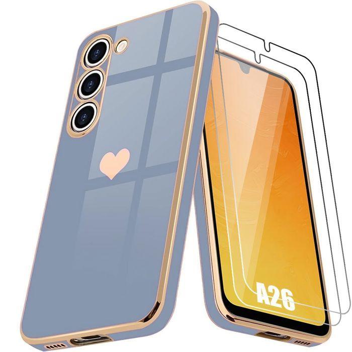 Coque de protection - BOOLING - pour Samsung Galaxy A26 5G - Antichoc Ultra Slim - Motif Cœur - Bleu - avec 2 Verres Trempés