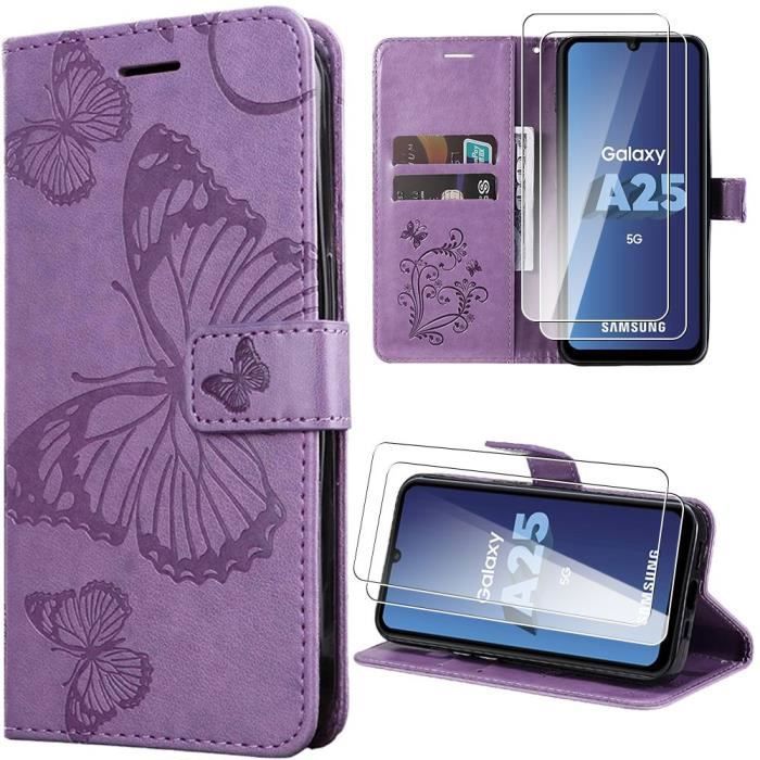 Coque Antichoc - Booling - pour Samsung Galaxy A25 5G - Violet - Antichoc - Cuir PU à Motif Papillon