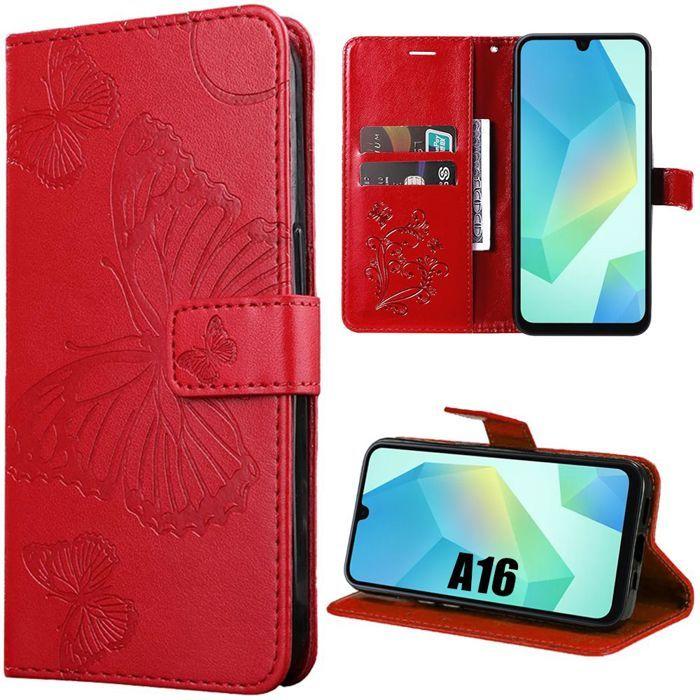 Coque de protection - BOOLING - pour Samsung Galaxy A16 5G/4G - Effet cuir rouge - Motif papillon - Antichoc
