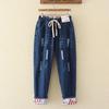 GMXIA Summer Plous-size Women's Wear, Tight-fitting, Lace-up, Ripped Jeans, and Nine-inch Skinny Pants Are Trendy