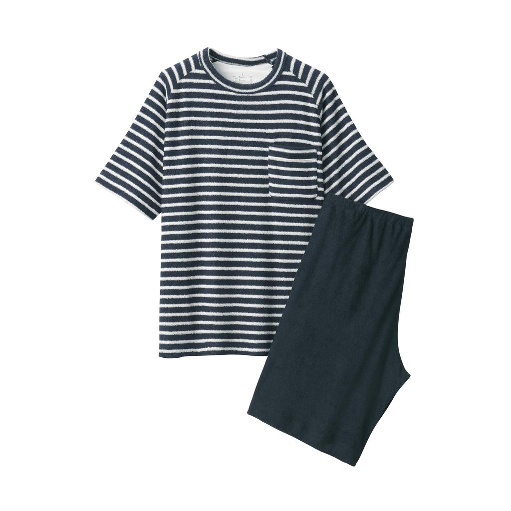 MUJI Towel Double Sided Pile Short Sleeve Room Wear Set FB0XZA5S Dark Navy Border XS Men's Men's Men's