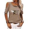 Women Fashion Print Tee Shirt Summer Off Shoulder Short Sleeved Top Ladies Casual O Neck T-shirt