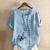Tricou cu mânecă scurtă, cu gât rotund, cu flori de modă pentru femei