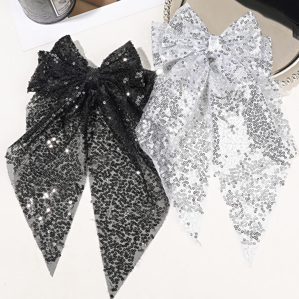 Fundă de păr mare cu sclipici, făcută manual, cu coadă lungă și clamă de păr confortabilă, va crea cel mai bun look elegant și romantic al tău! Sunt super eleganți și clema este suficient de mare pentru a fi folosită pe părul/coafurile adulților. Prind chiar și părul fin în siguranță și fără să alunece.