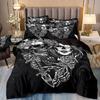 Set de trei piese 3D Textile de casă Lenjerie de pat Schelet Femeie frumoasă Imprimeu Husă de pilotă Cearșaf