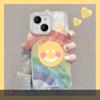Suitable for Apple 15 Feather Yarn Mobile Phone Case Summer Iphone14pro Smiley Face Rainbow Invisible Bracket 13 Large Hole Soft Edge
