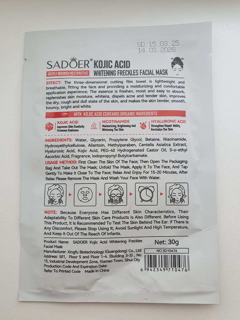 Mască de albire și îndepărtare a pistruilor cu acid kojic 30g SADOER Mască hidratantă și iluminatoare