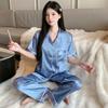 Women Sleepwear Sets Rest Summer Autumn Pajamas Set Turn Down Collar Faux Silk Satin Short Sleeve tops and long pants Female Pijama Home Wear