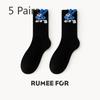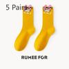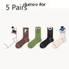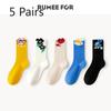 5 Pairs of Female Spring and Autumn Deodorant Sweat Absorbing Cute Preppy Cartoon Tube Cotton Socks