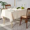 Farmhouse Style Beige Tassel Table Cover, Suitable For Buffet Table, Holiday Dinner, Party, Dining Room, Wedding Rectangular Western Tablecloth