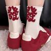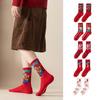 5 Pairs of Female New Year Chinese Knot Retro Sweat Absorbent Non Slip Big Red Tube Socks