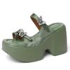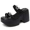 Papuci de damă din piele naturală, stil francez de vară, cu toc înalt de 10 cm, cu platformă, vârf deschis, cu degete, cu decor fluture