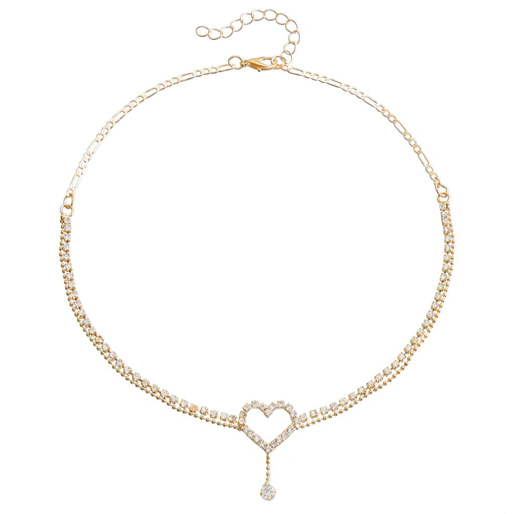Double-Layer Flash Diamond Love Short Necklace Choker Pendant Neck Strap Neck Chain Neck Jewelry Women'S Collarbone Chain